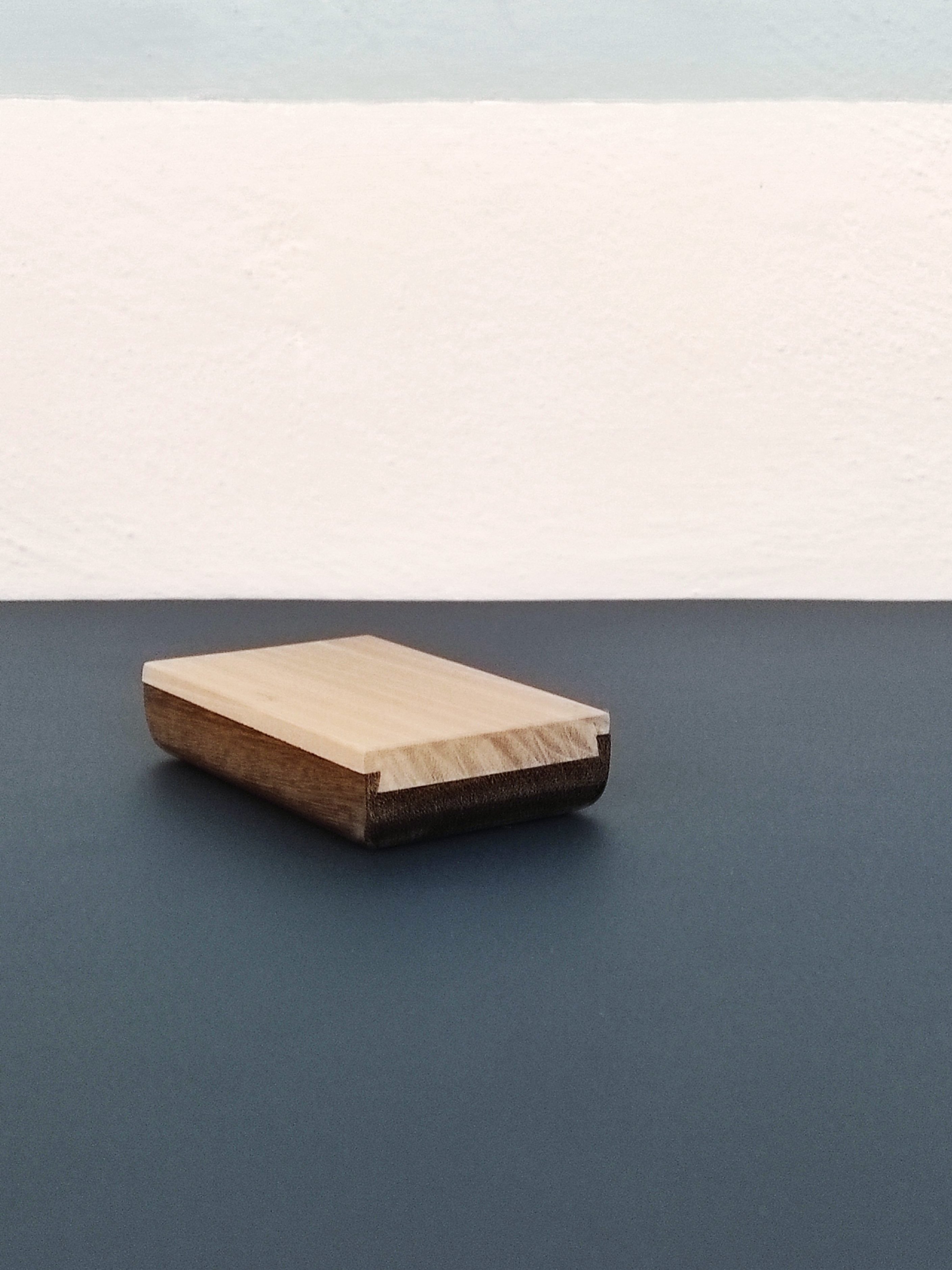 Sliding container made with two contrasting woods: dark brazilian itauba and light walnut.